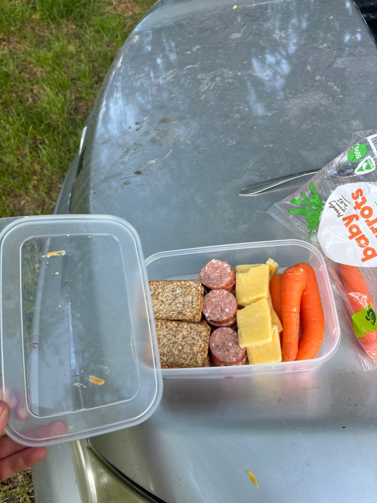 POV**: you’re at a campsite just off the highway but nestled in beautiful trees next to a lake. You just tried fixing your bike for 45 minutes to no avail. “Fixing” is an overstatement because really you just got a flat tire, which is basically the most common thing to happen. You’re making curry on a camp stove, but it’s ridiculously windy outside. The trash, spinach bag, and even your small container of milk keep flying away, so you chase them frantically down the hillside. Pure chaos. You manage to finally concoct this meal of crunchy rice and heaps of paneer (honestly pretty good) and eat it next to the lake. Finally, you clean it up, put everything back in its correct organizational bin, and curl up in the sleeping nook in your car. You’re me. You’re lying there listening to Laufey (fun fact, she’s Icelandic) while you watch and hear the wind blow through all the trees above you. In that moment, you’re lovingly grateful for shelter without even trying to feel that way, which makes you giggle. Eventually, you eat some chocolate, brush your teeth, and sleep.